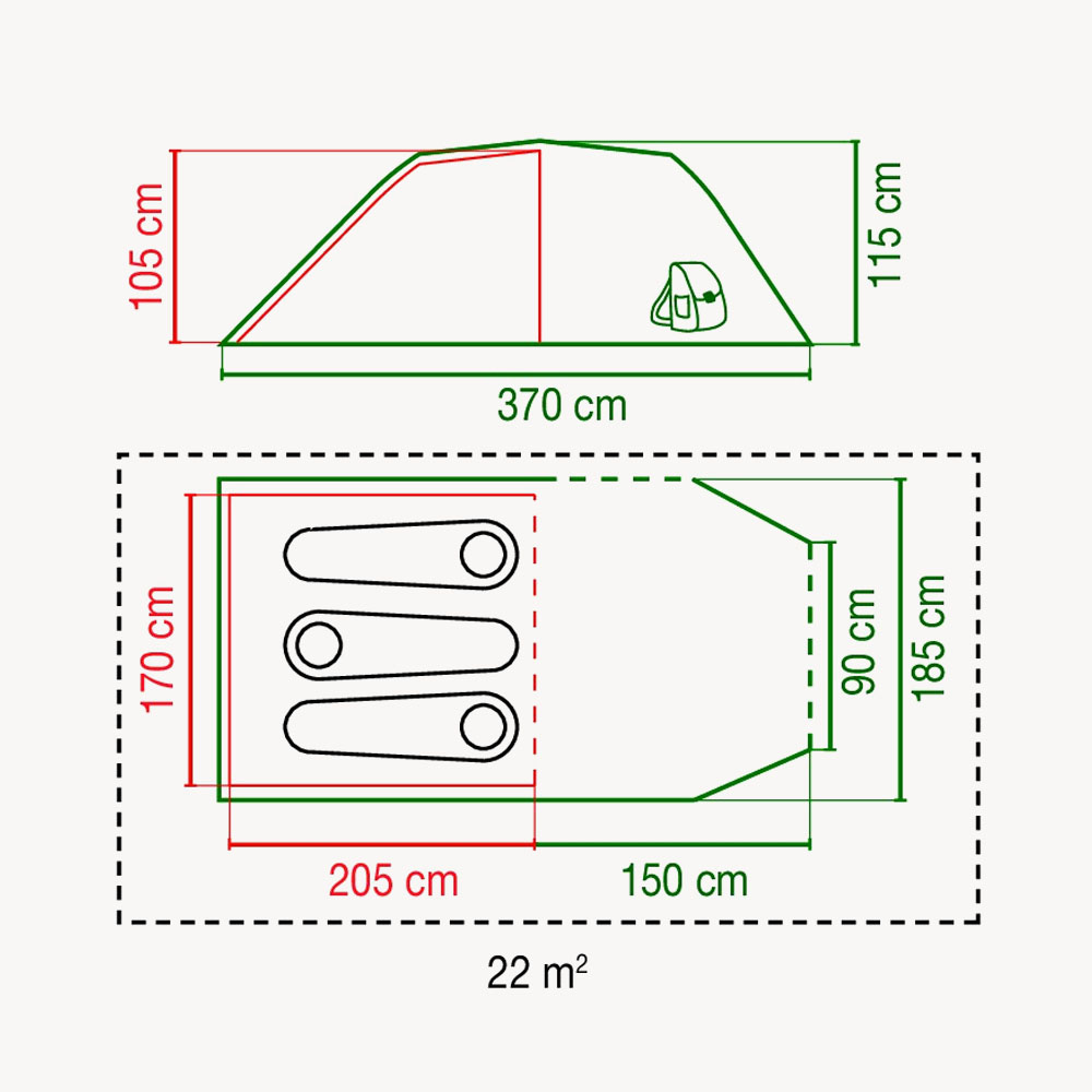Poszerzona sypialnia namiotu o szerokości aż 140 cm zapewni Ci wyjątkowy komfort snu i wakacji.