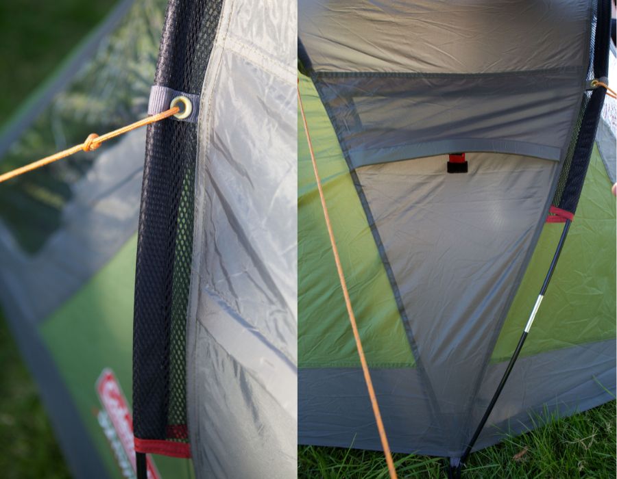 Szerokie, wytrzymałe taśmy na froncie namiotu dodatkowo stabilizują go podczas burzy i silnego wiatru.