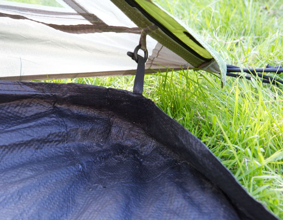 Regulowany próg drzwi do namiotu ułatwia wchodzenie i wychodzenie. W razie potrzeby można go podnieść i zapiąć zamekiem.