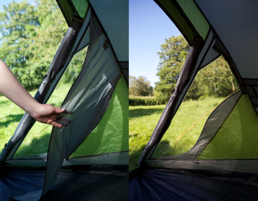 Trzy niezależne warstwy w oknach namiotu pozwalają dostosować się do zmiennej pogody podczas wakacji.