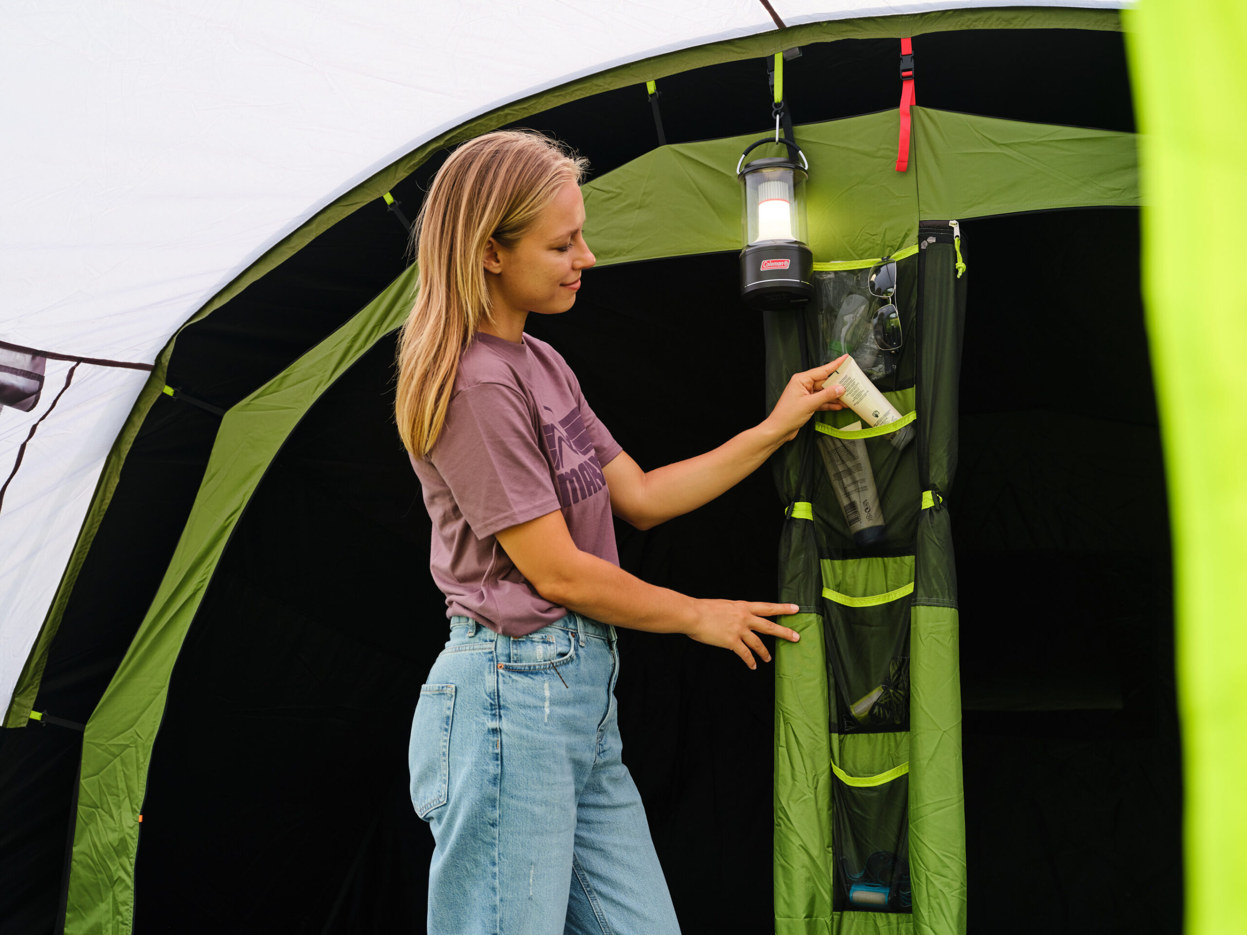 Wewnętrzne kieszenie organizera pozwolą Ci zachować porządek wewnątrz namiotu.