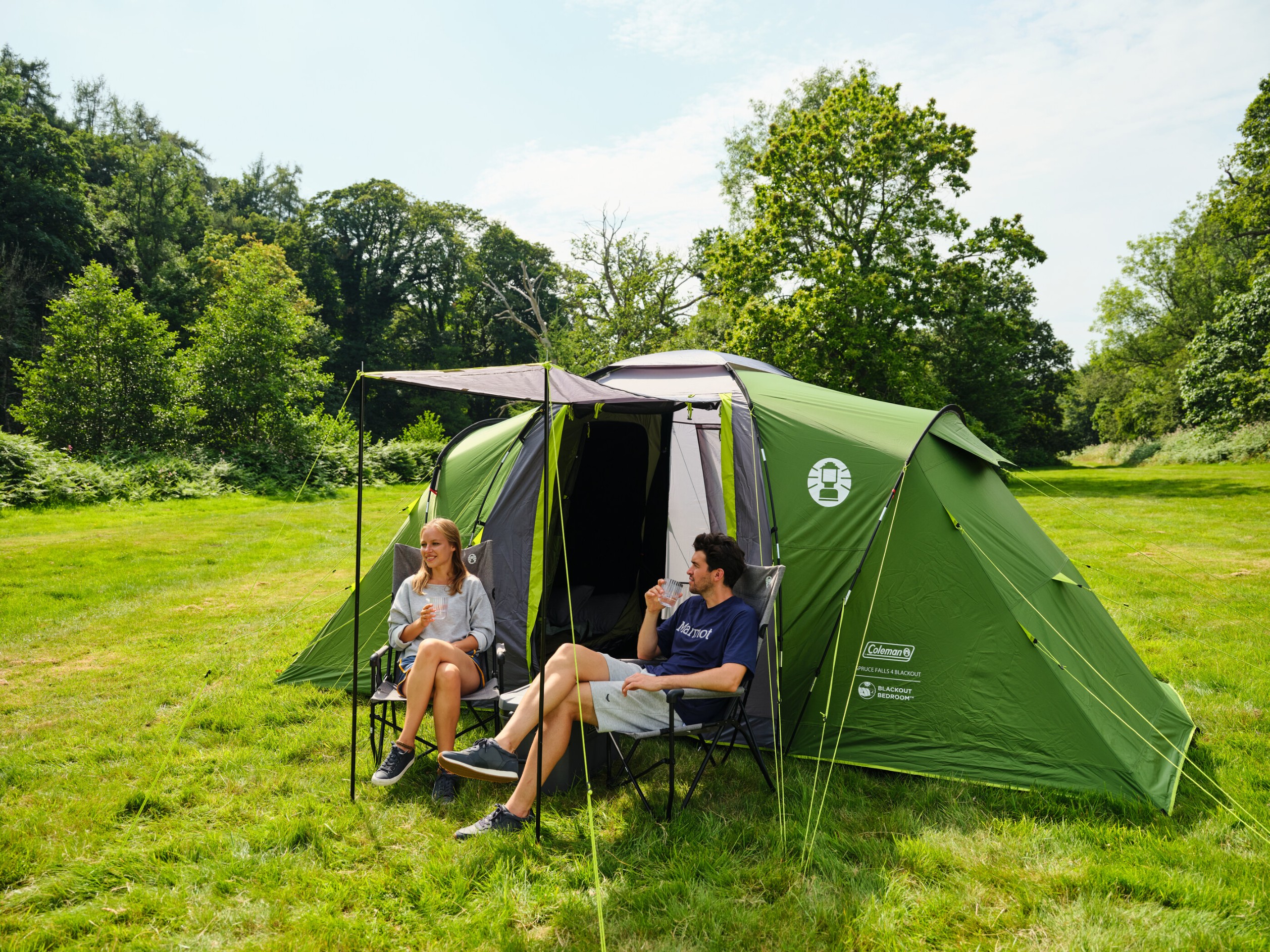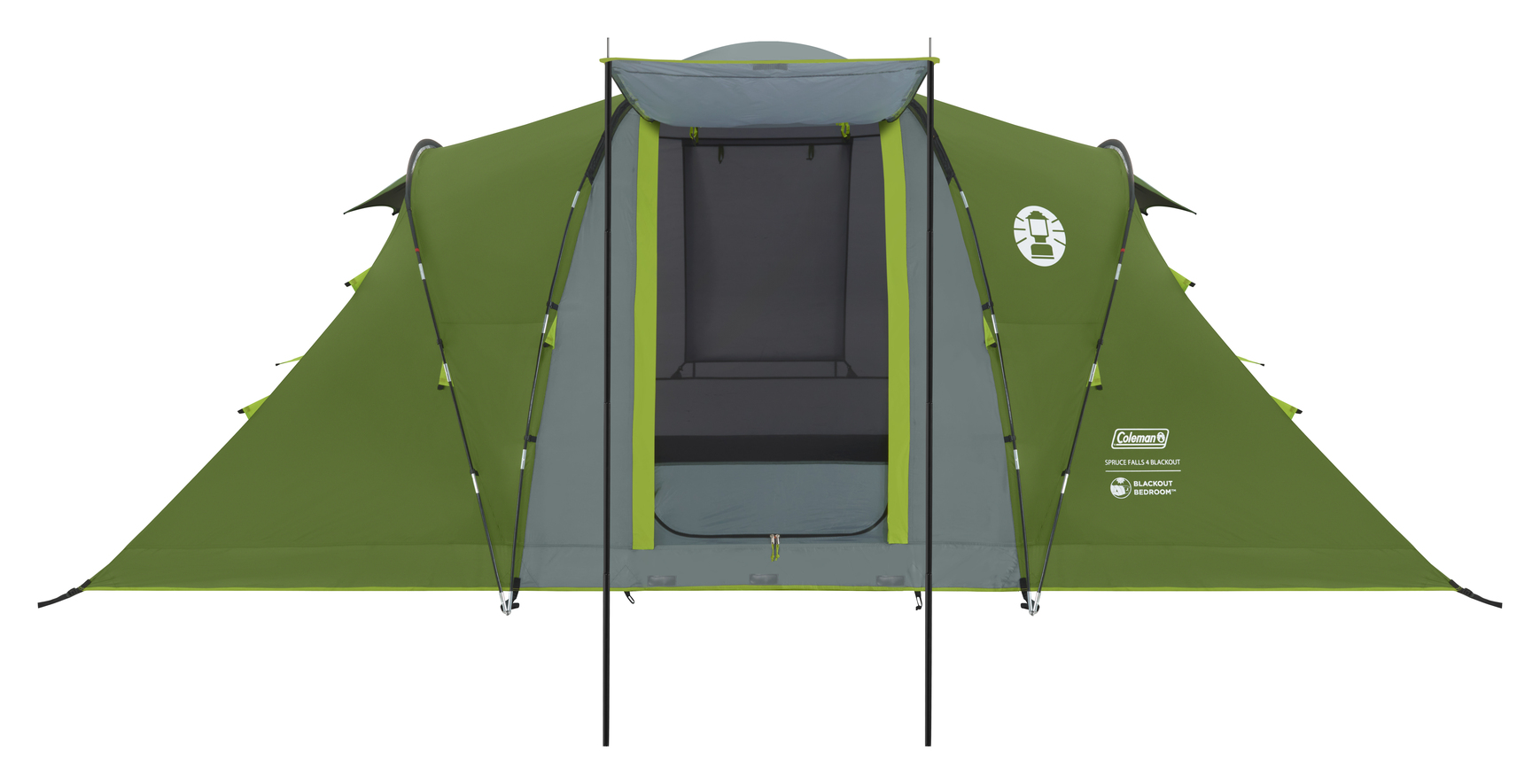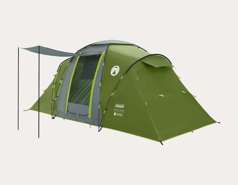 Nowy design namiotu rodzinnego z naprzeciwległymi sypialniami w wersji z technologią BlackOut. Podłoga jest zintegrowana ze ścianami i posiada wysokie panele boczne, co chroni przed silnymi opadami.