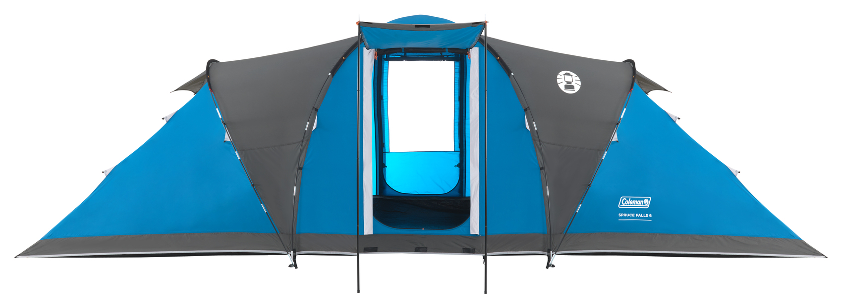 Namiot rodzinny z naprzeciwległymi sypialniami. Strefa dzienna jest jasna i przejrzysta. Podłoga jest zintegrowana ze ścianami i posiada wysokie panele boczne, co chroni przed silnymi opadami. Dodatkowo, namiot posiada przedni daszek.Podłoga jest zintegrowana ze ścianami i posiada wysokie panele boczne, co chroni przed silnymi opadami.