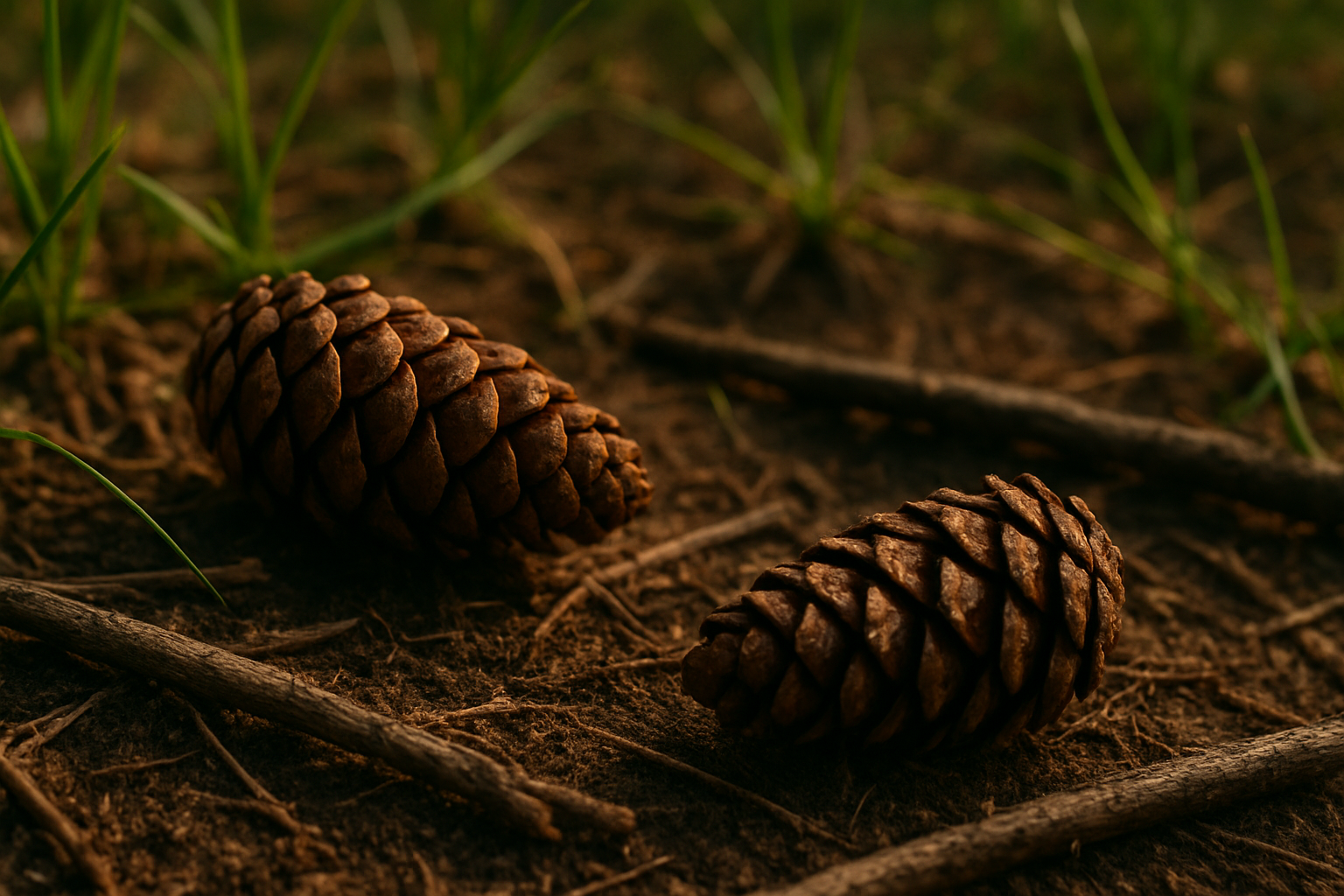 2. Jak już jesteśmy przy wodzie, to warto wspomnieć o korytach spływu wody deszczowej. Dość łatwo można poznać takie miejsca, ponieważ pozbawione są igliwia, liści i gałązek (ewentualnie widać, że zbierają się wokół jakiejś przeszkody, np. przy korzeniu. Sprawdzenie ukształtowania terenu pod kątem spływu wody deszczowej jest o tyle istotne, że w razie deszczu nie okaże się, że Twój namiot jest na drodze tymczasowego leśnego potoku.